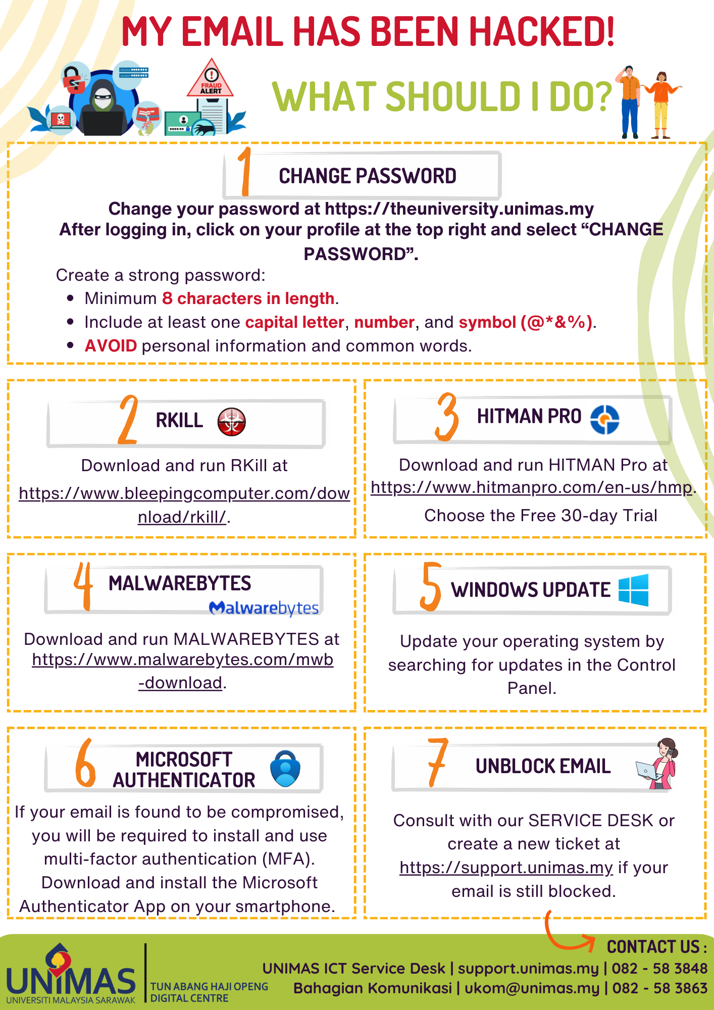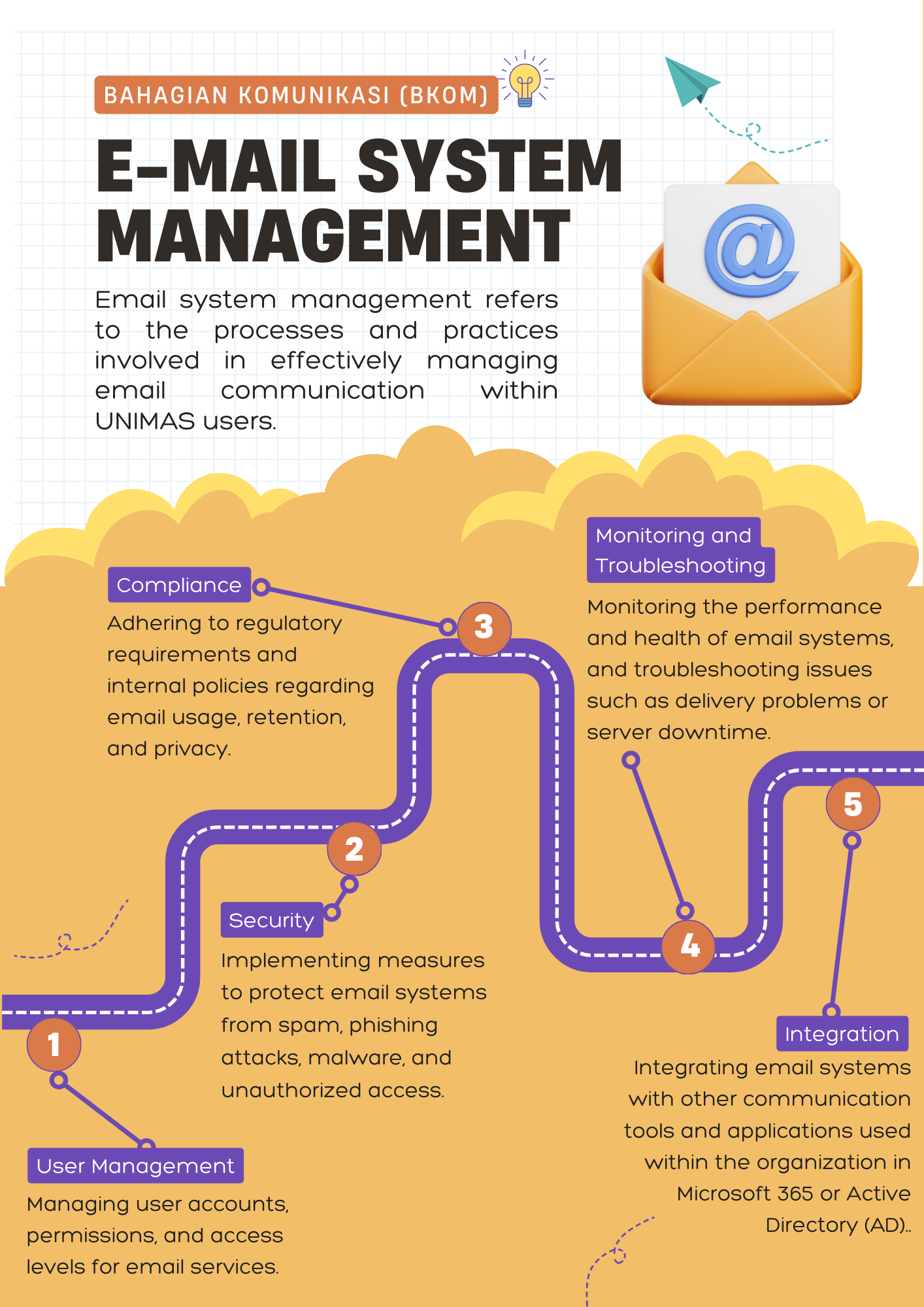UNIMAS provides an email system on the Microsoft 365 platform to its staff and students. Microsoft Office, Outlook and Teams are among the popular applications included in the bundle.