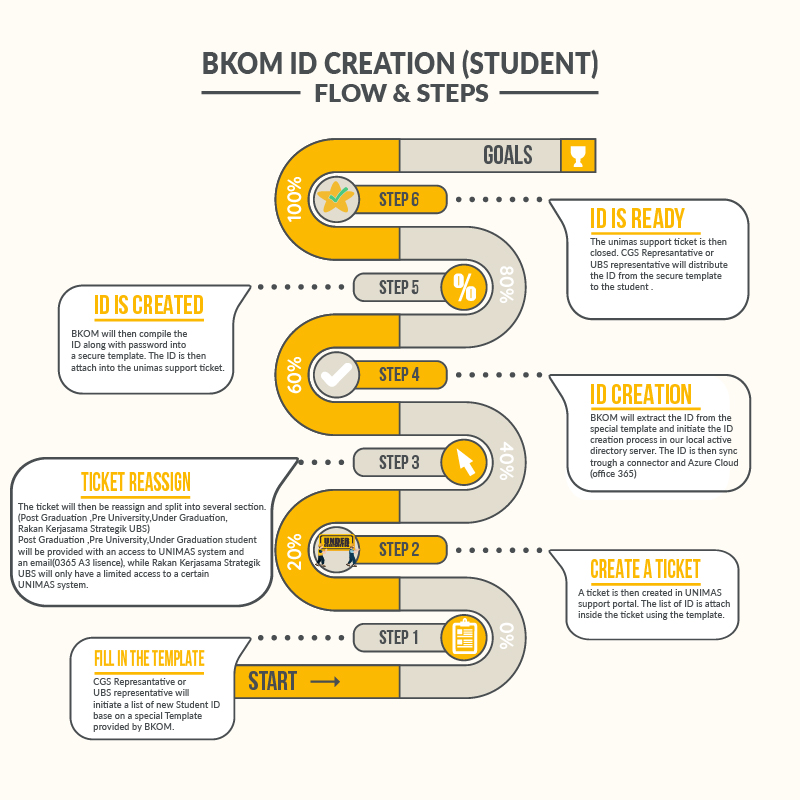 All staff and students are issued UNIMAS IDs. Email is among the many applications that can be accessed using it. Once the required data is obtained, the ID will be generated.